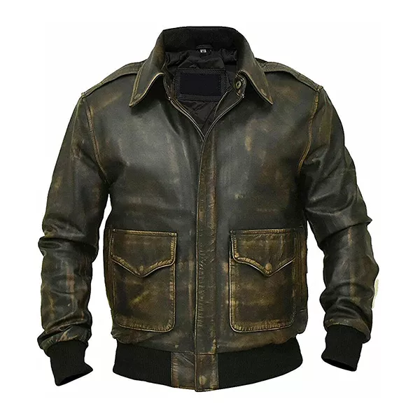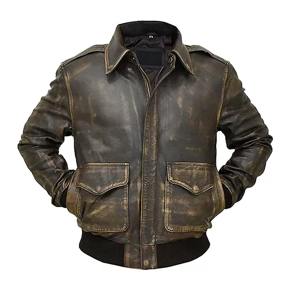 A2 Distressed Aviator Brown Bomber Leather Jacket