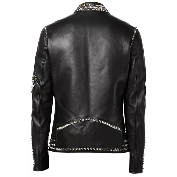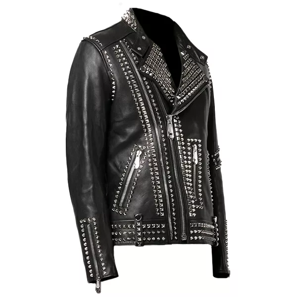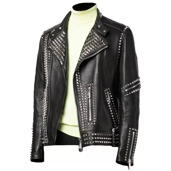 Men’s Biker Black Studded Leather Jacket