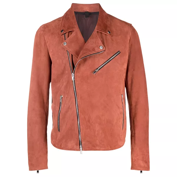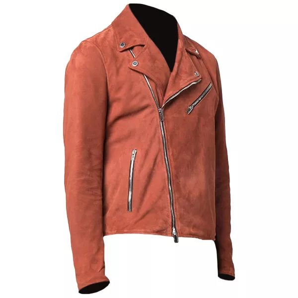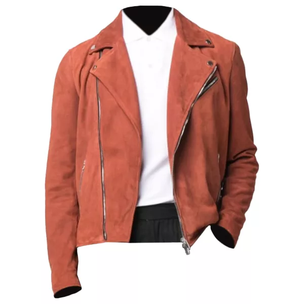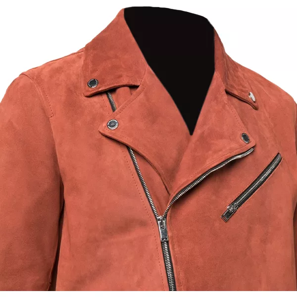 Mens Orange Moto Suede Jacket