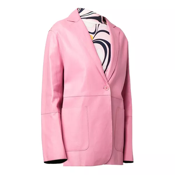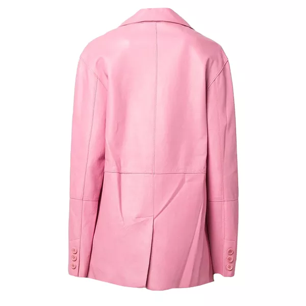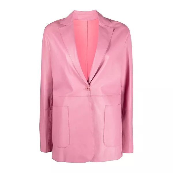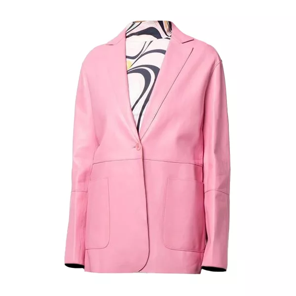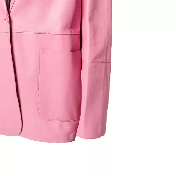 Pink Women’s Button Pocket Leather Blazer